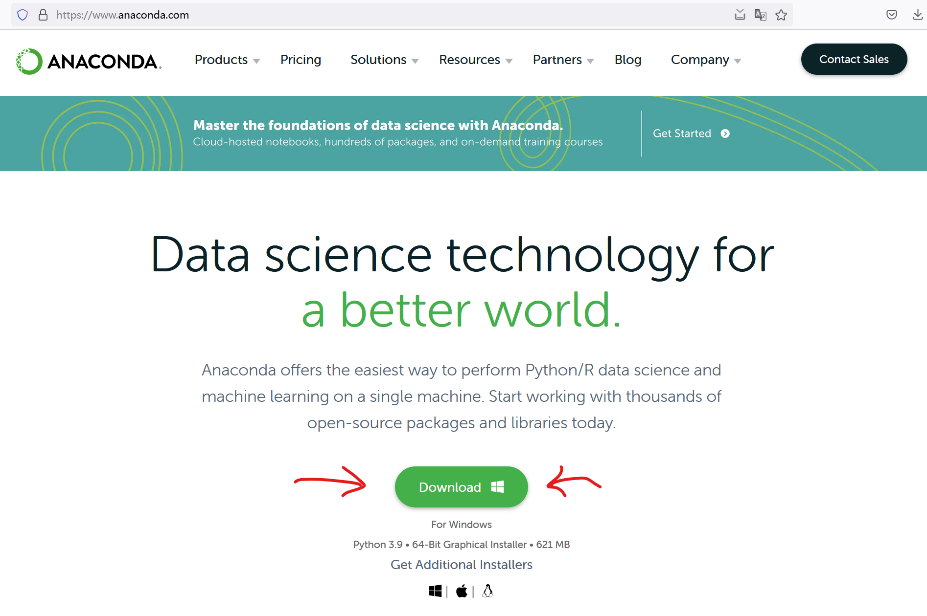 我们需要安装Anaconda3。前往Anaconda的官网下载安装包