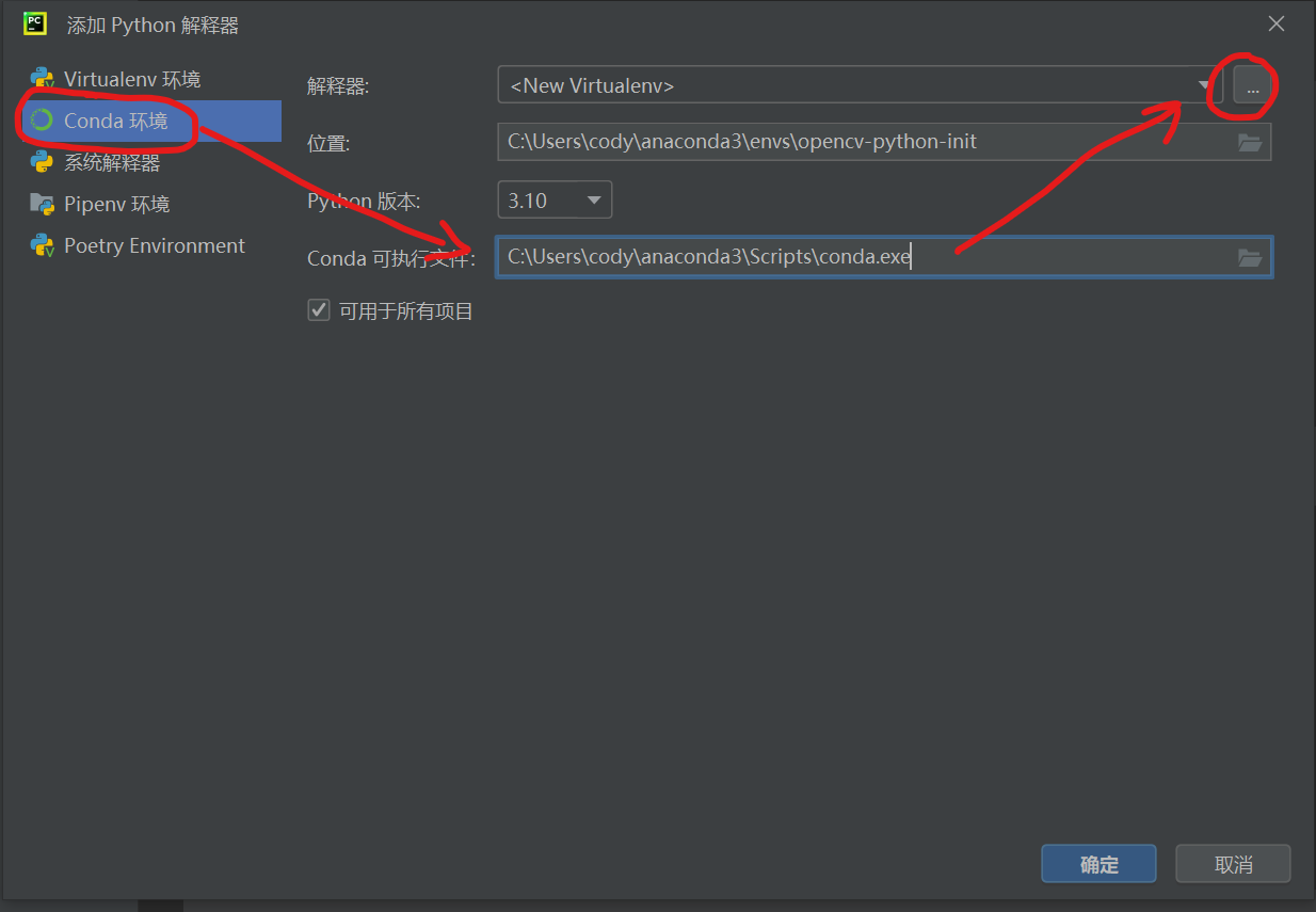 conda create -n <conda环境名称> python=<python版本>比如我想创建一个环境名称是opencv,python版本是3.10的虚拟环境,我就输入