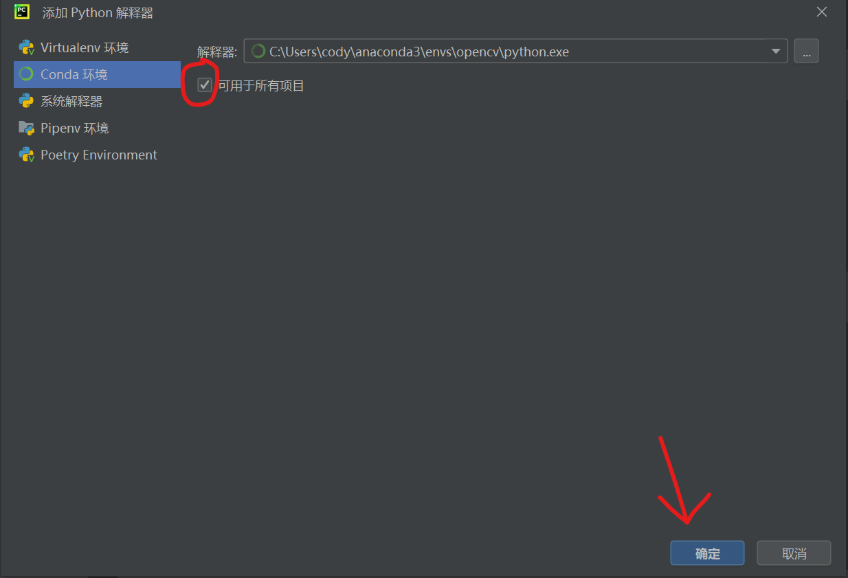 # 改成你的conda环境名称,比如opencv