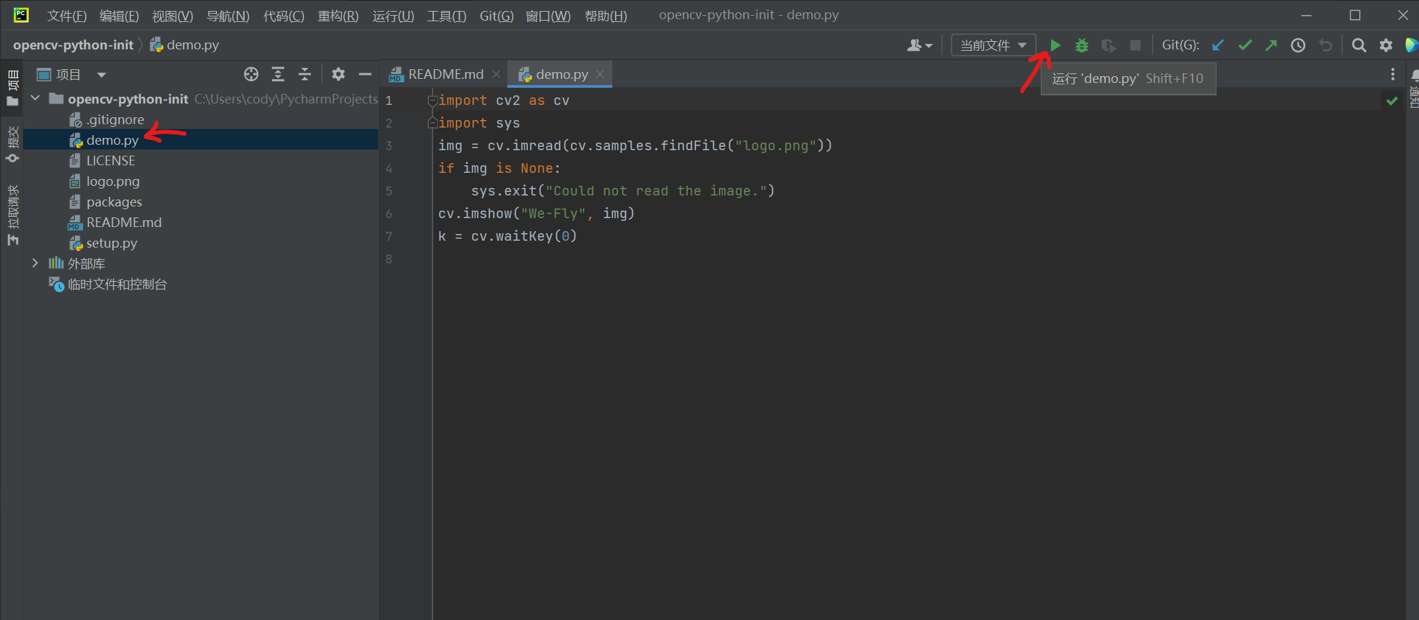 然后双击打开左侧的demo.py