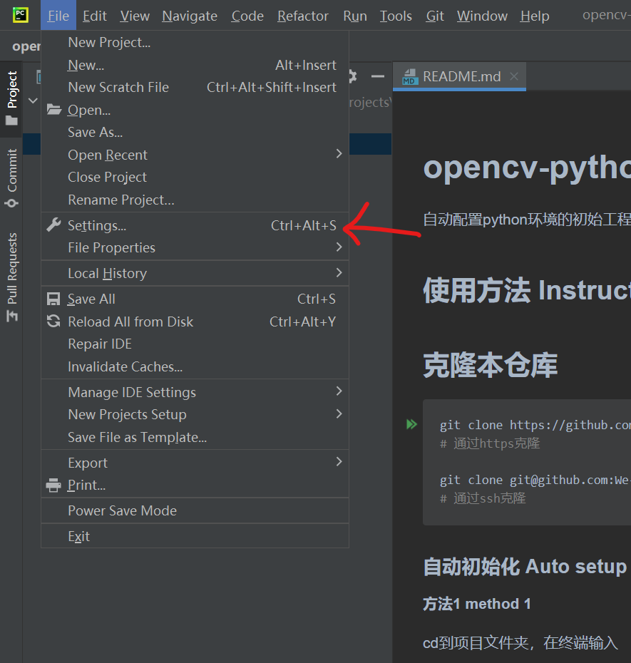 然后打开Pycharm,请确保你已经安装好了Git