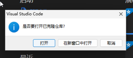 克隆完成以后,会提示是否打开仓库,点击打开就行