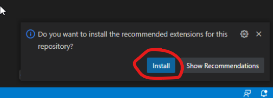 注意,右下角会提示是否安装推荐插件,点击install