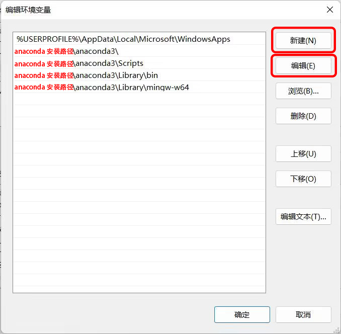 然后双击上面用户的Path条目,也就是图片中蓝色的一行,或者选中这一行以后点击一下编辑按钮